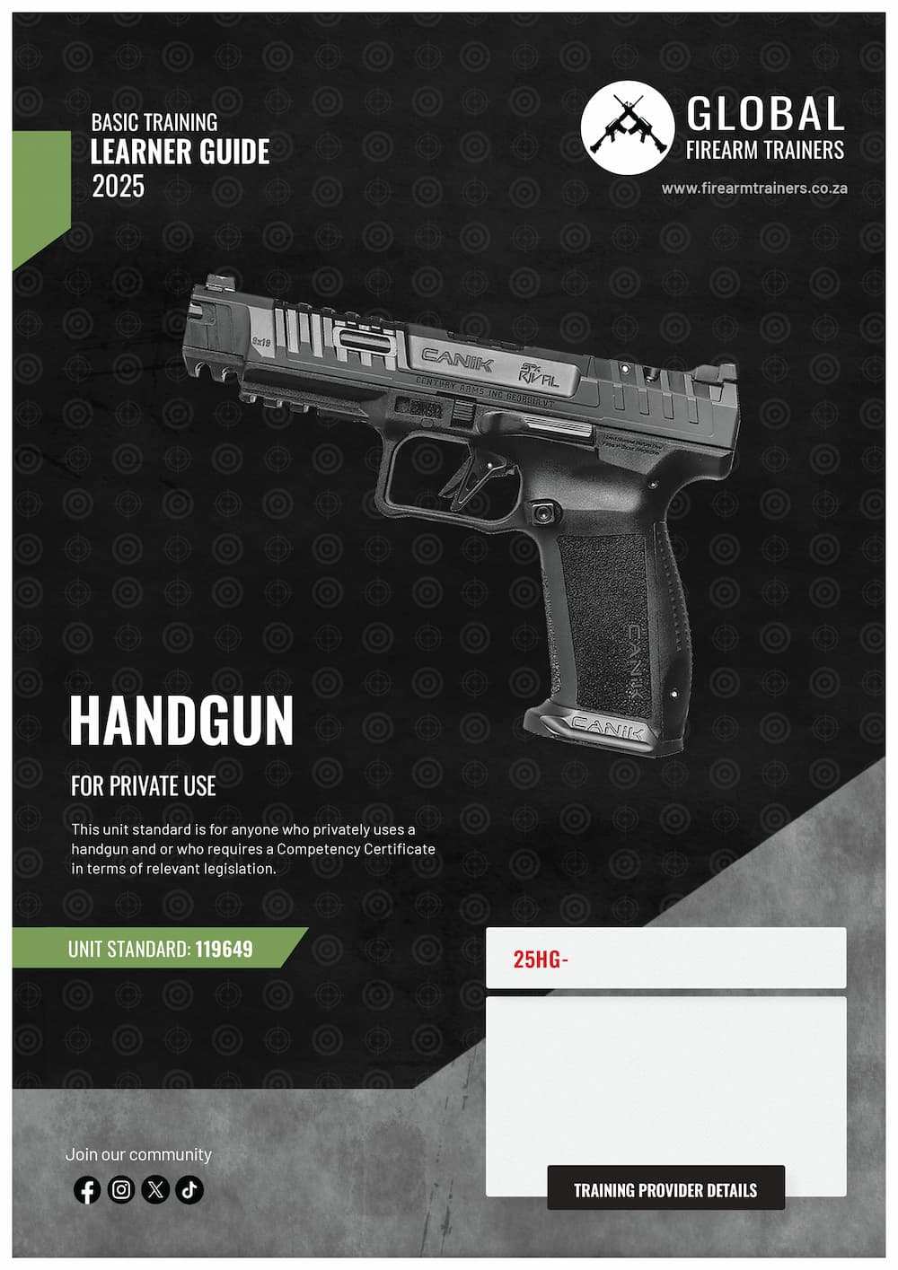 This unit standard is for anyone who privately uses a handgun and or who requires a Competency Certificate in terms of relevant legislation.