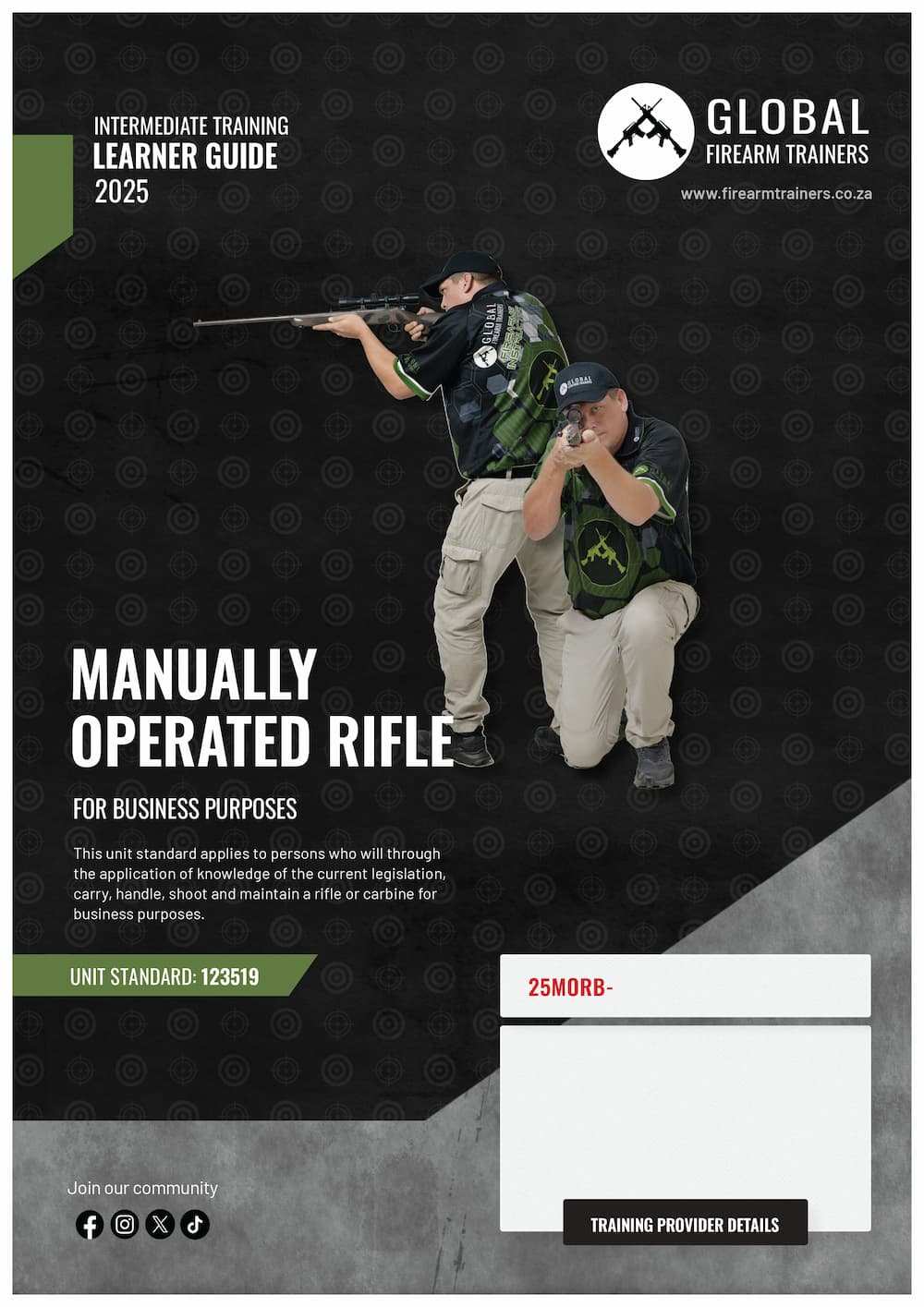 This unit standard is for anyone who privately uses a manually operated rifle or carbine and or who requires a Competency Certificate in terms of relevant legislation.